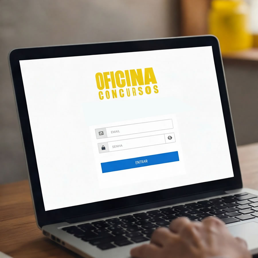 Estude onde e quando quiser. A Oficina Concursos reúne aulas, PDFs e simulados no estilo da prova tudo em um só lugar e no seu ritmo.